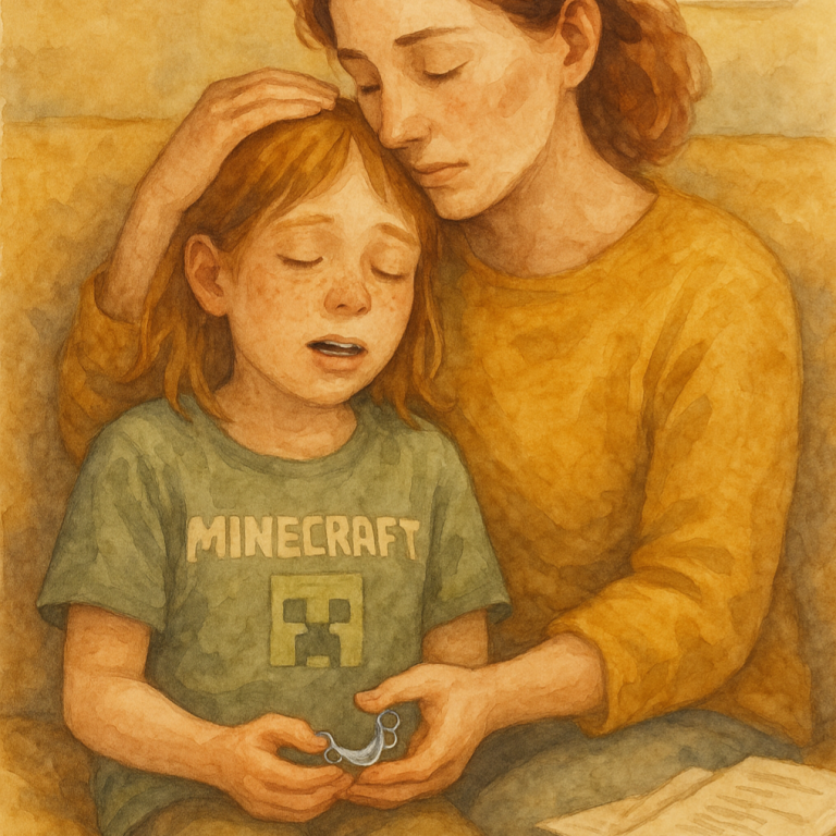 Dazu kam vor Kurzem eine neue, lose Zahnspange. Wir hatten bereits im Vorfeld einen sehr einfühlsamen Brief an den Kieferorthopäden geschrieben, um zu erklären, was auf uns zukommt – und wurden nicht enttäuscht: Ein Arzt mit echter Empathie, der sich wunderbar auf unser Kind eingelassen hat. Am ersten Tag wurde die Spange tatsächlich gut angenommen – zur Überraschung aller. Aber schon am zweiten Tag war der Widerstand da. Massiv. Die Spange wurde komplett verweigert, das Einsetzen führte zu starken emotionalen Reaktionen – Überforderung pur.